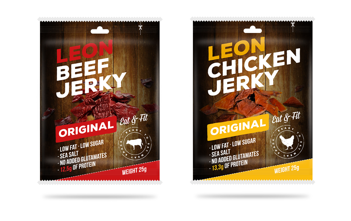 Pro předního českého výrobce uzenin a mastných výrobků jsme vytvořili nový design obalů základní produktové řady sušeného masa pod obchodním názvem LEON JERKY.