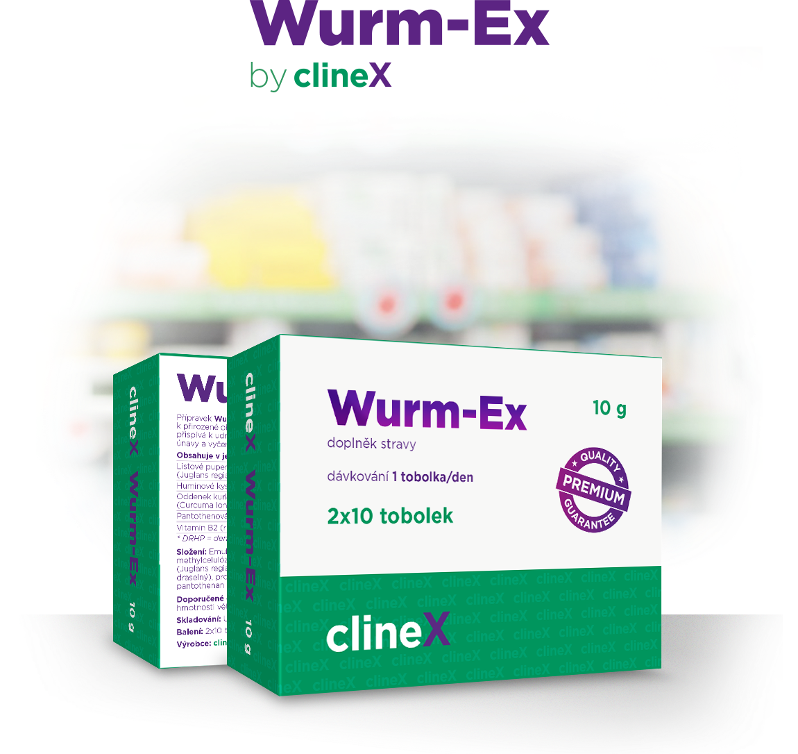 Pro kliniku zdraví a krásy ClineX jsme vytvořili design krabičky nového přírodního produktu Wurm-Ex. Jedná se o jediný volně dostupný a vysoce účinný doplněk stravy proti externím agentům lidského organismu.